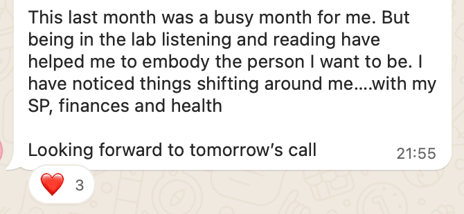 ● Private WhatsApp Circle — daily encouragement, questions answered, and a space to share wins and breakthroughs between calls.
