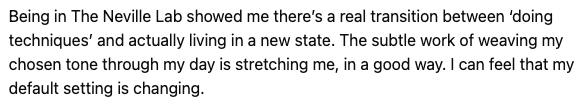 That’s why The Neville Lab exists. Because practicing in community makes the state steady, natural, unshakable.